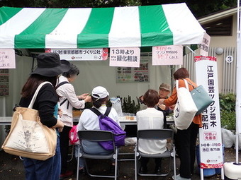 自治体や各種団体が主催する環境イベントに参加し、種苗の配布や緑化相談の実施などにより、都民のみなさまに緑の普及啓発活動を行っています。